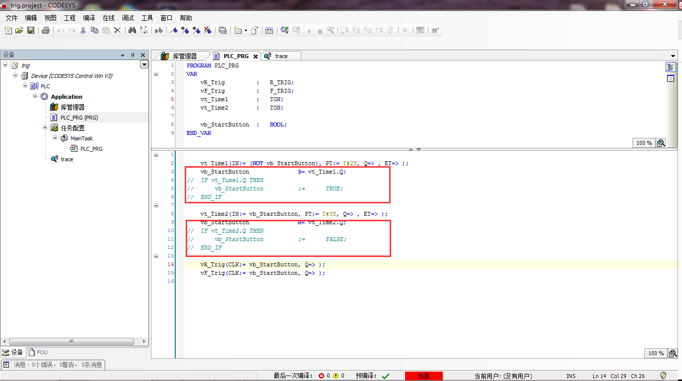 同样的在ST文本这种高级语言中,也是有置位和复位语句的。