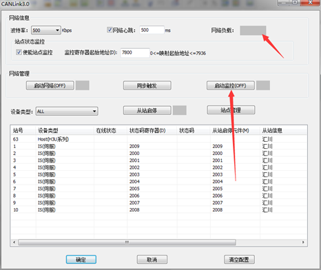 当我们配置好canlink表之后,下载到plc,然后电机canlink配置表,弹出如下界面,点击启动监控按钮,进行实时监控,看网络负载率。如果大于75%可能会造成系统不稳定,所以需要优化canlink表的配置。