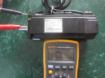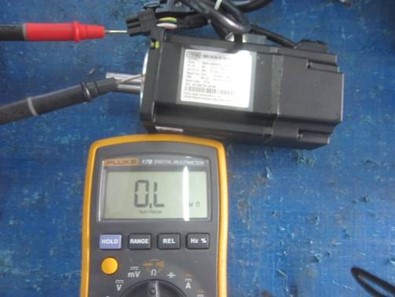 使用万用表电阻档分别检测抱闸线是否对电机机壳有短路现象,正常抱闸绕组对地的阻值均为无限大;如图10所示: