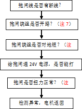 如果能转动则说明抱闸扭力不够,电机返回。