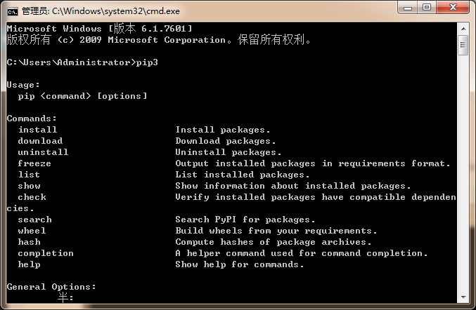 我这里用的是Windows平台,电脑在装python3.6环境的时候,已经同时装好了pip3.首先 使用Windows+R键,然后输出cmd,打开cmd的dos框,输入pip3,用于判断pip3是否安装成功,安装成功后,将出现下面的信息。如果没有安装成功,则请自行百度pip3的安装方法。